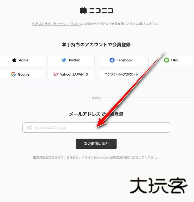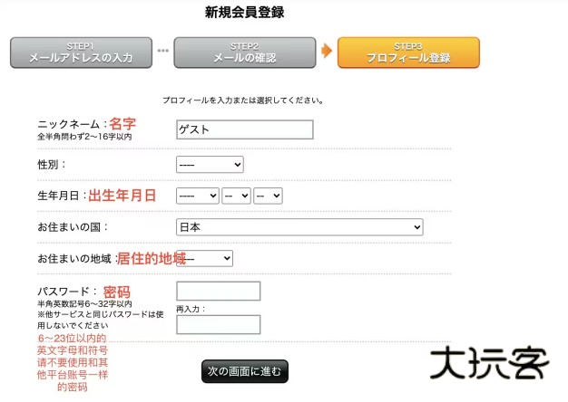 2、输入你的邮箱,点击次の画面に进む,这里的邮箱使用国内的邮箱也可以。