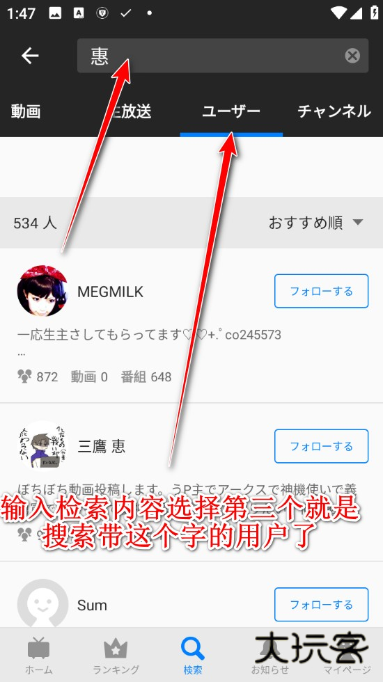3、输入你的搜索词,选择第三个就是带这个字的用户了。