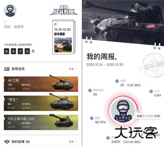 【我的】,你将浏览自己的生涯经历与游戏偏好,这里不仅能查看战斗周报,常用坦克、勋章等个性数据,更可通过战斗数据与战友们一较高下,并能发现自身不足,以便调整你的战术。