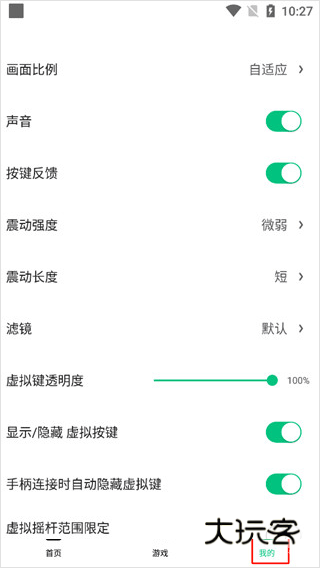 2、自定义调节画面比例、声音、震动强度、显示或隐藏虚拟按键等等;