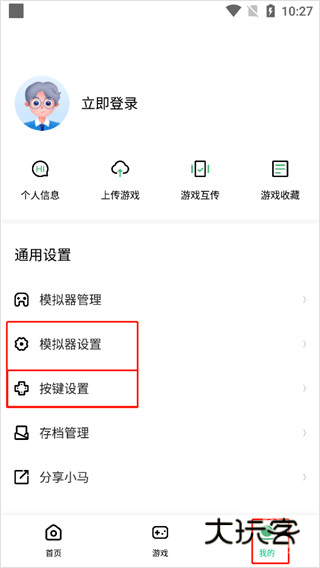 1、下载并安装好软件之后,进入模拟器中下载你想要玩的游戏,之后可以通过“我的”并单击设置,如图:
