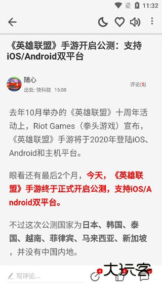 4、例如小编选的游戏,可以看到最新的游戏信息:英雄联盟手游开启公测;