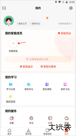 进入“我的"界面,点击“组建家庭"按钮,点击“立即创建”即可。