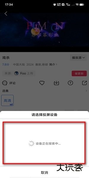 这个时候软件就会开始搜索电视设备了,搜索到后点击进行投屏即可!