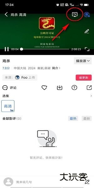 进入播放界面后,点击右上角的“TV电视”按钮,如图所示;