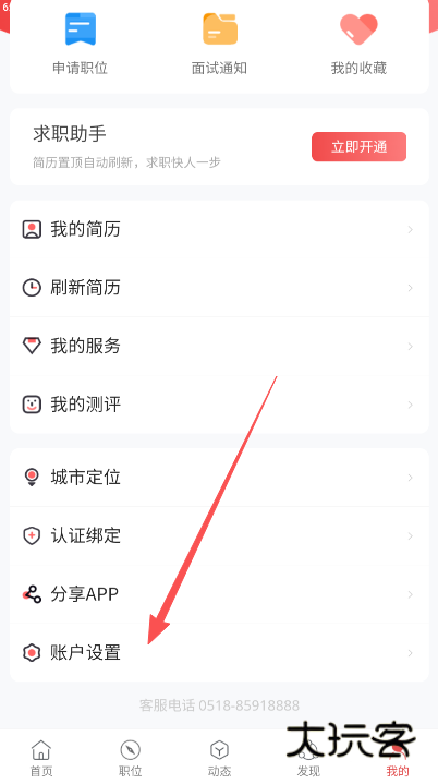 1、以求职者的身份登录,在个人我的页面点击账户设置。