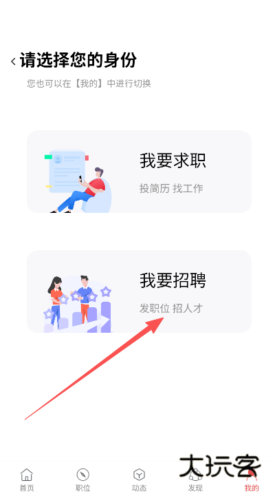 2、来到身份选择页面以后,点击选择我要招聘,也就是所谓的企业方。
