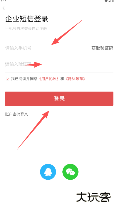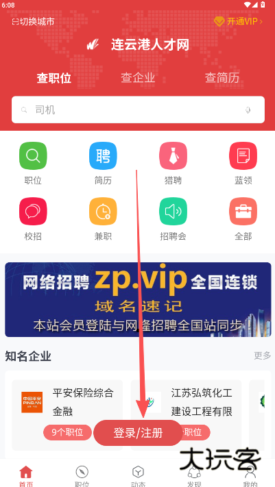 1、打开下载好的软件以后,在首页选择登录/注册。