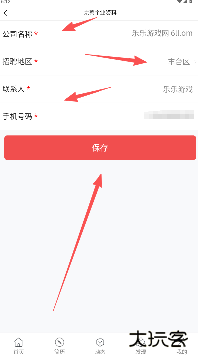 4、在企业资料栏将各项信息补全:公司名称、招聘地区、联系人等并点击保存。