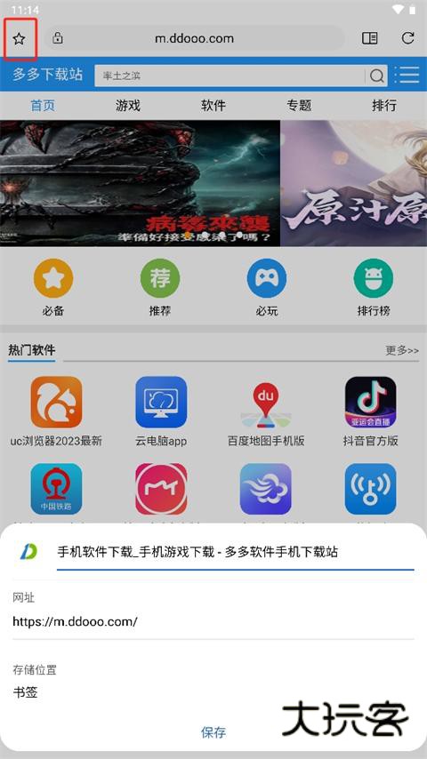 2、对于喜欢的网站可以点击下图的星星图标,可以将喜欢的网站快捷加入书签,以便用户下次直接进入页面