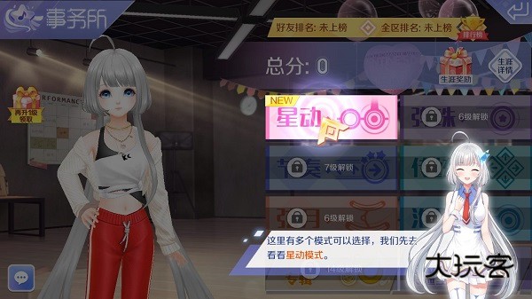 事务所包含了星动模式、弹珠模式、泡泡模式几个玩法,是新手阶段提升个人技术的地方。