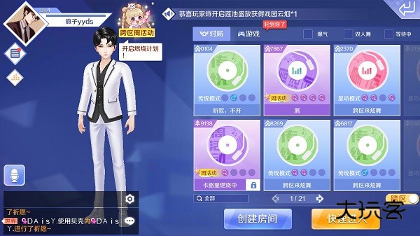 玩家在完成新手事务所挑战与排位赛后,可自由创建休闲大厅,邀请好友共同完成曲目挑战。系统设计了多样互动功能,玩家能在场景中进行角色互动、环境互动,还可开启自由聊天与舞蹈展示。休闲大厅不仅是娱乐场所,更是情感交流的空间,让音乐成为玩家之间的纽带。