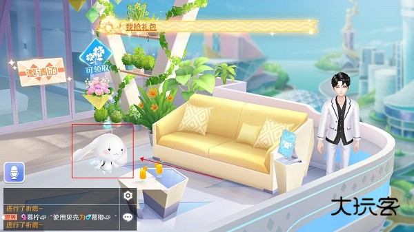 2、点击人物后就进入到自己的家里,进入后在左边找到一个宠物,找不到的还是看图片,找到后点击宠物,点击后就能看到设置按钮了。