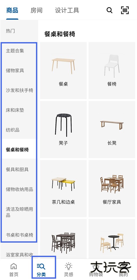 1、下载并打开IKEA宜家家居app,在分类中选择类别。