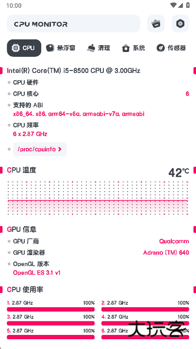 cpu监测app是一款专业的性能监测类工具,通过该工具能够为大家提供到非常不错的监测服务,支持用户随时查看cpu硬件等等信息,了能够为大家带来专业的系统工具应用,同时该应用也是支持一键清理垃圾,加速网络状态等等,有需要的朋友现在就来下载使用吧!