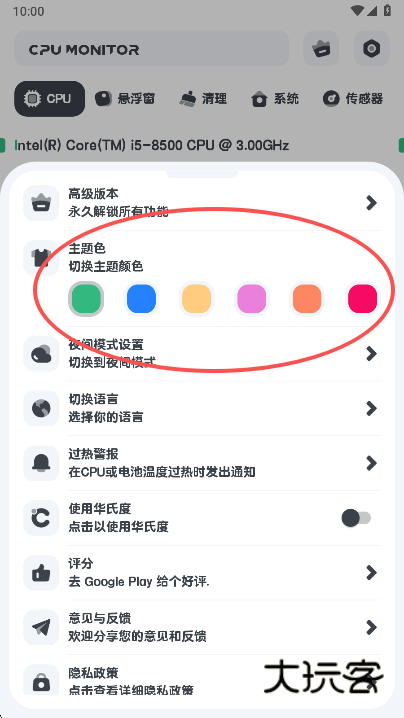 CPU 监测在功能强大同时,也是一款非常漂亮的软件,支持多主题切换,你可以选择自己喜欢的主题颜色。