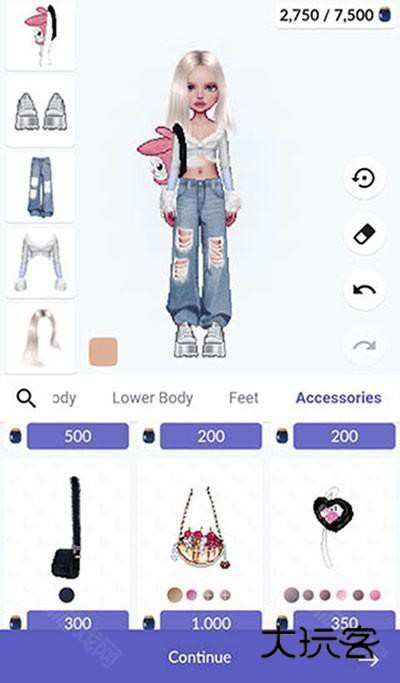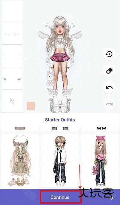 3、人物右侧有上一步和下一步,橡皮可以撤销角色身上的一切装扮。