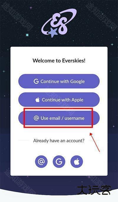1、首先在本站下载安装好永远的天空,打开进入等待2~3分钟,选择登录方式“use email”。(不是bug,只是延时,需要耐心等一下)