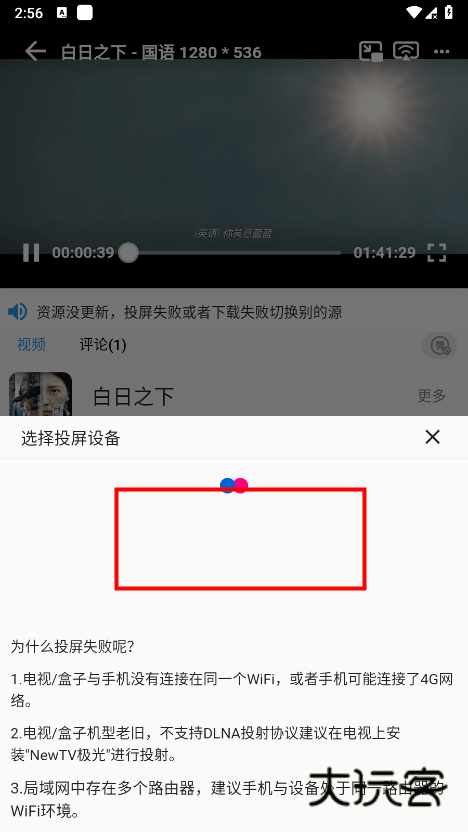4、注意,务必确保手机端和电视端处于同一wifi下,否则无法搜索到结果。