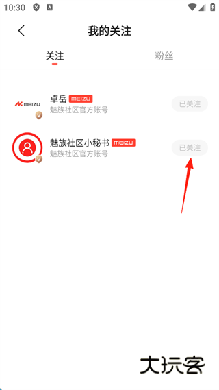 3、点击想要取消关注的人账号右侧的“已关注”。