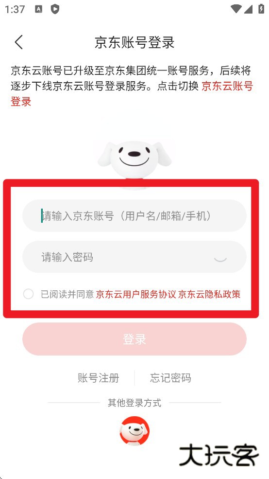 1. 首次使用需登录京东帳號,支援手机号、用户名或信箱登录,统一接入京东帳號体系。