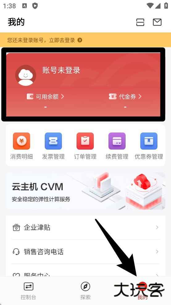 3. 点击“探索”可进入精选模組,浏览产品、云市场、帮助文件和行业洞察等实用内容专区。