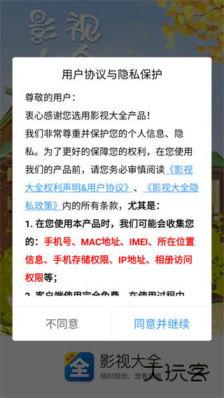 1、下载并安装影视大全后,首次进入软件需要阅读并同意隐私协议。