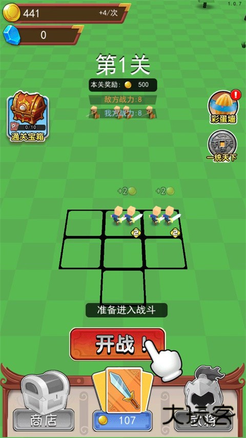 5、随着关卡的增加,难度也会越来越大,你要合理的搭配兵种才能获胜。