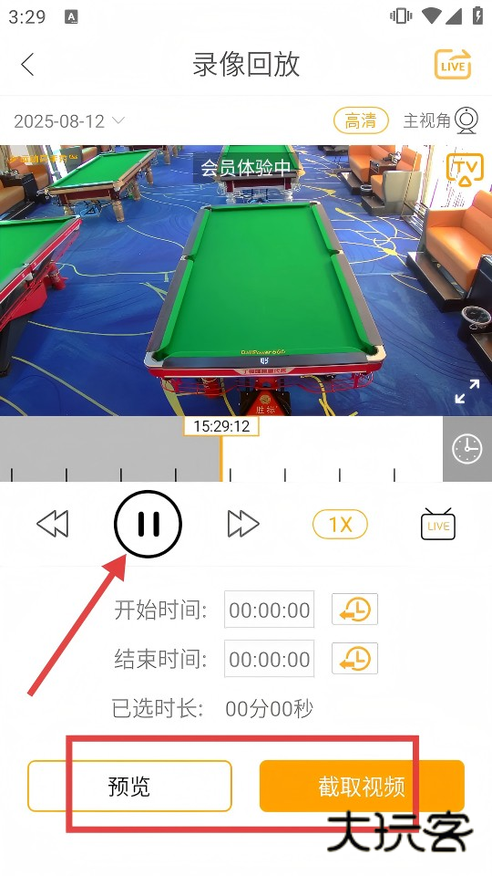4、录像回放页点击【暂停】播放,可选择【预览】或【截取视频】功能操作。