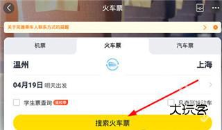 2、接着我们选择目的地和出发地,然后点击下方的“搜索火车票”按钮。