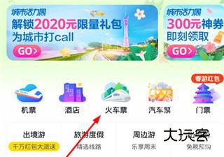 1、首先我们进入到飞猪购票APP的主界面,在该界面点击“火车票”。