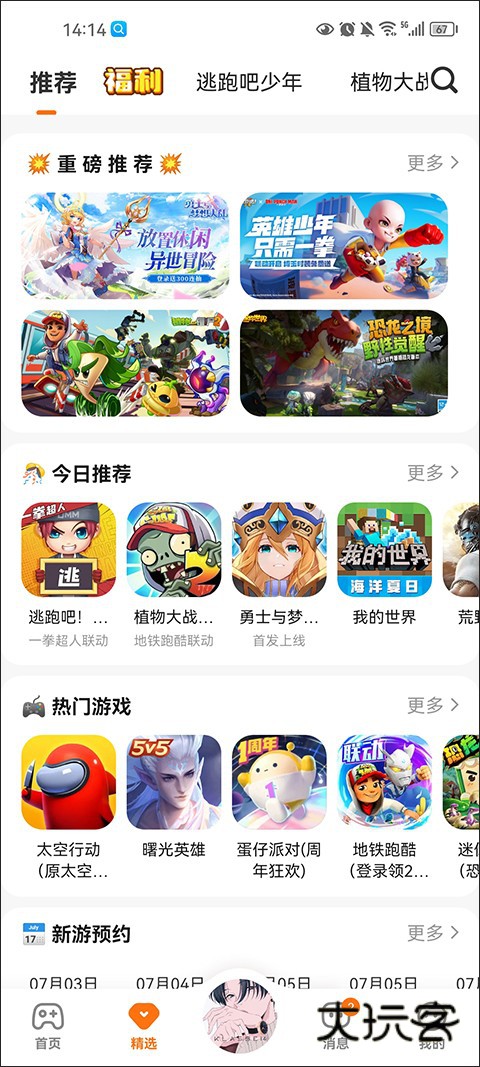 提供推荐、热门游戏、活动专区、上头神作、火爆新游、主播热完游戏、预约有好礼、福利中心、热度飙升、每周推荐、品质好游推荐、等游戏题材,只为展示你所需要的分类以及内容。