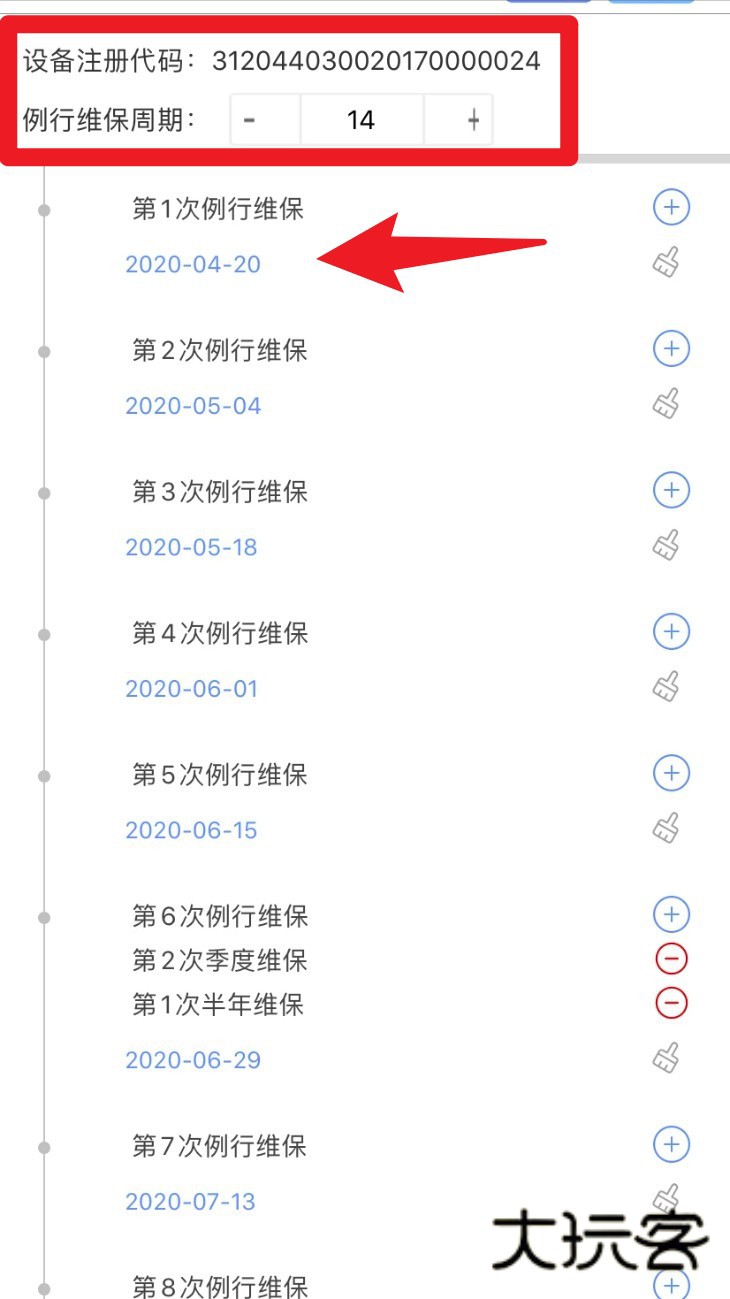 4. 在时间轴页面查看历史维保记录,确认当前为第几次例行维保,避免重复操作或遗漏日期。