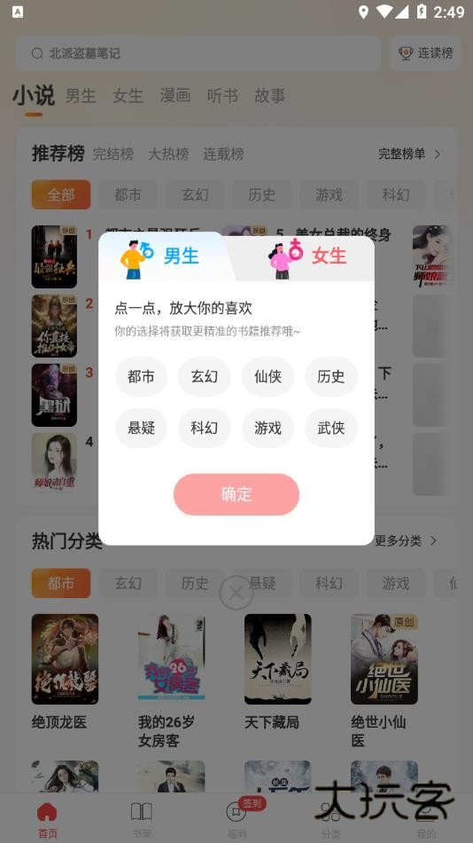 2、小说种类齐全,仙侠、修真、历史、都市、校园等应有尽有;