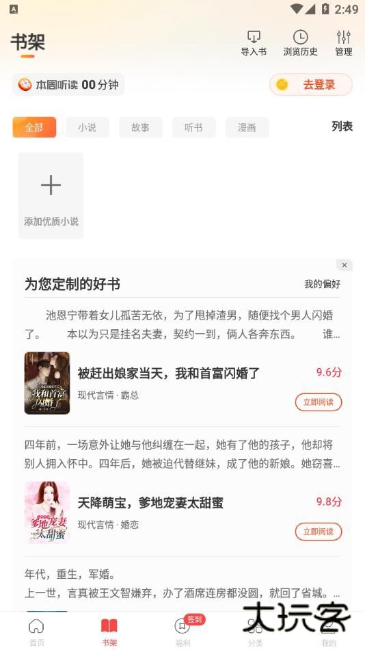 3、打开书架,查看添加的书籍信息,便于下载缓存;