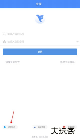1、打开飞鸽,点击左下方“账号注册”,进入注册页面,根据图示正确填写内容,填写完成后点击“立即验证”