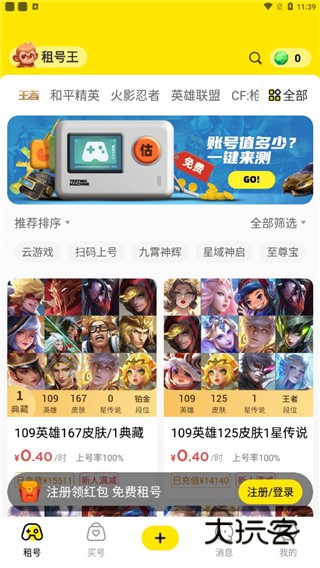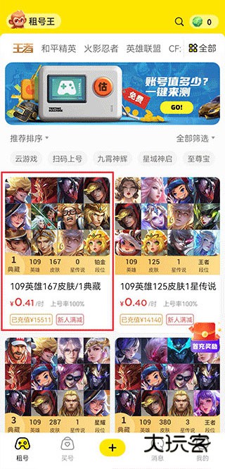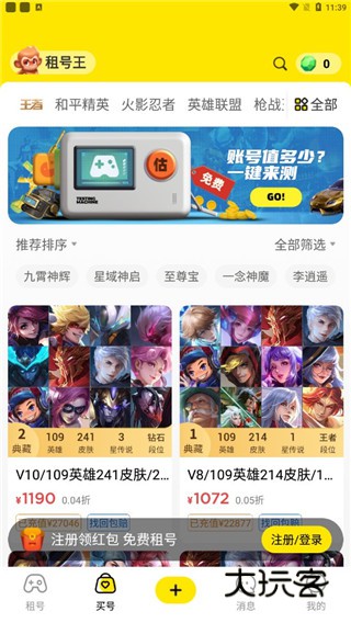 租号王是一款给用户提供了超全超多的游戏账号的软件,用户在线就可以租到级别非常高的游戏账号,账号都是比较优质的,各种火爆的游戏都有,用户除了租号还可以买号,价格都是非常优惠的,软件操作方便,交易安全,还有很多福利红包可以领取。