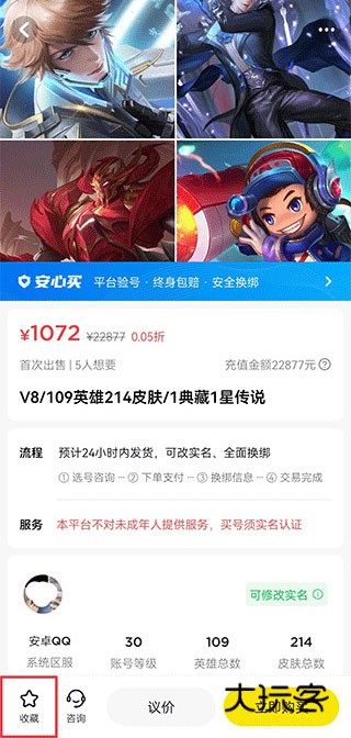 在买号界面中,点击进入游戏账号购买界面,并点击左下角收藏键即可