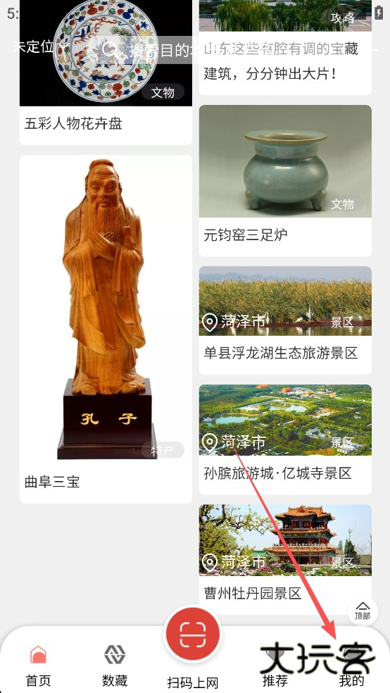 1、打开山东文旅通App,点击【我的】