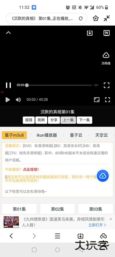 3、进入到网页的播放窗口里面,通常最下方和最上方有下载的按钮。
