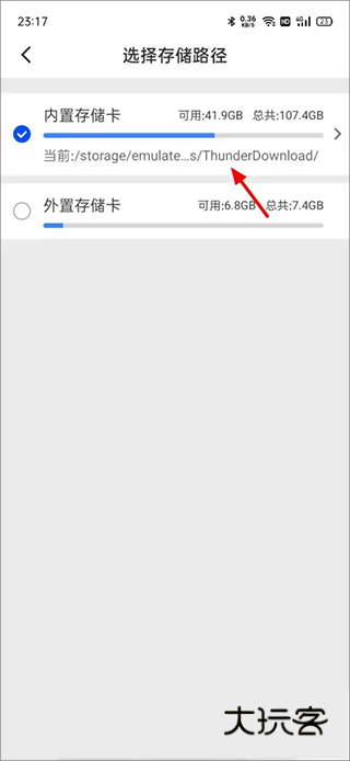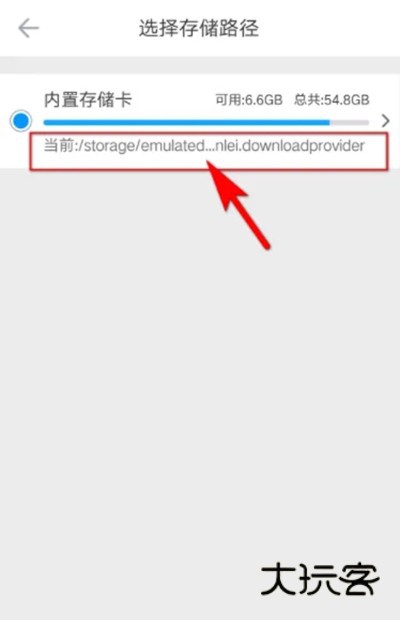 4、点击进入后,会查看文件的下载路径,但是路径没有显示完全,点击进入,选择上一级,就会看到完整的下载路径,路径就是Android/obb/com.xunlei.downloadprovider文件夹。
