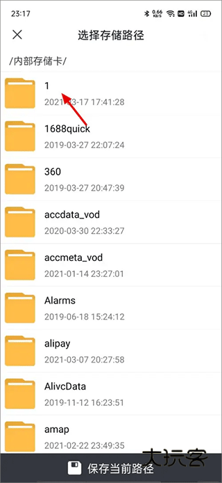 6、在内置存储卡页面,找到相册所在文件夹,进入后,点击保存当前路径