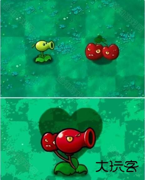 使用豌豆射手和两个樱桃炸弹进行融合,发射樱桃炸弹豌豆,但是发射频率有所降低
