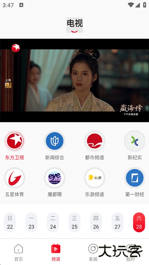 2、频道页面涵盖了卫视、新闻、都市、体育、财经等各种频道,您可以选择喜欢的频道畅看;