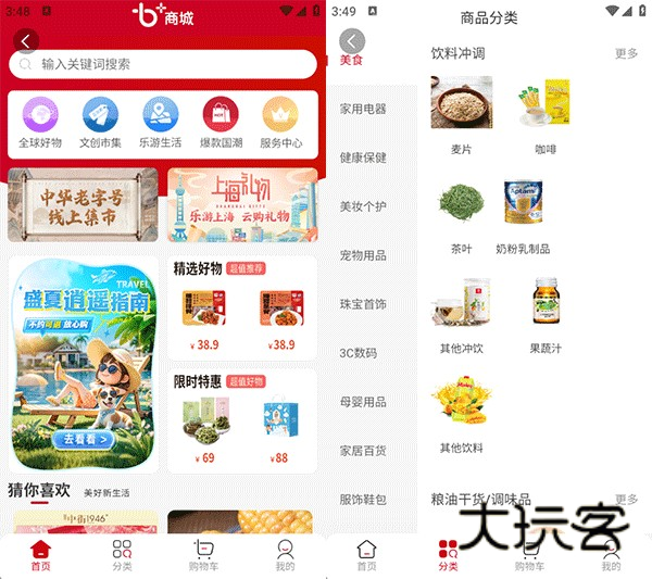 5、最后看东方APP在首页右上角的购物车图标中内置了商城功能,涵盖了衣食住行、吃喝玩乐等,应有尽有。