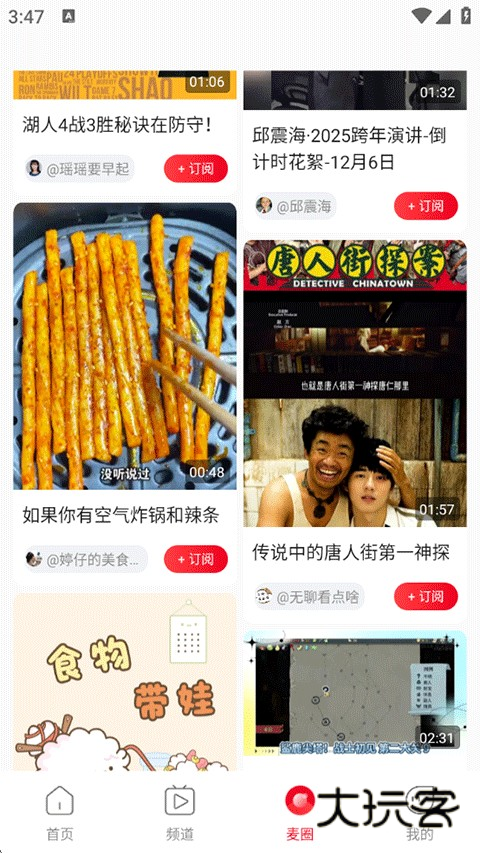 3、麦圈页面可以浏览许多关于电影、生活、和花絮的短视频,电影电视剧看累了,来刷刷短视频;
