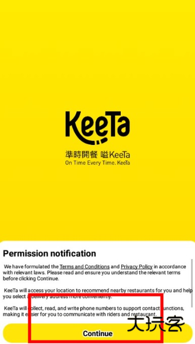 1、本站下载安装KeeTa美团同意隐私权限,点击continue。