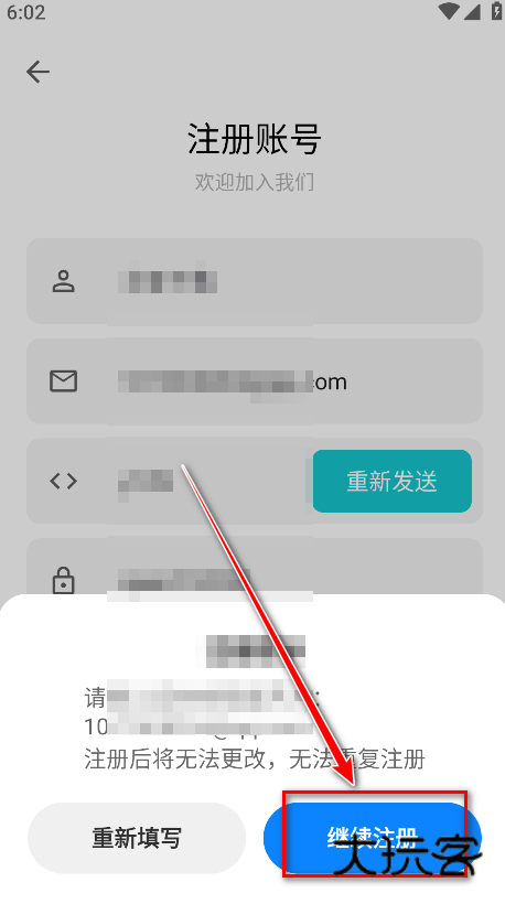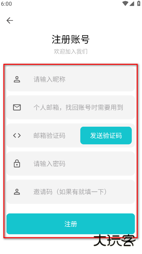 3.输入昵称、邮箱、验证码、密码,点击注册。
