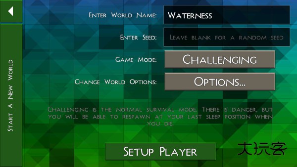 4、点击“new world”后,我们需要对创建世界,进行自定义的设置,设置完成后点击“setup player”。