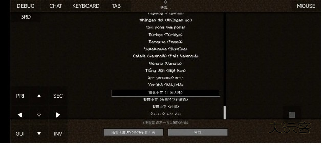 为了更好的游戏体验,请设置 强制使用Unicode字体 为关。